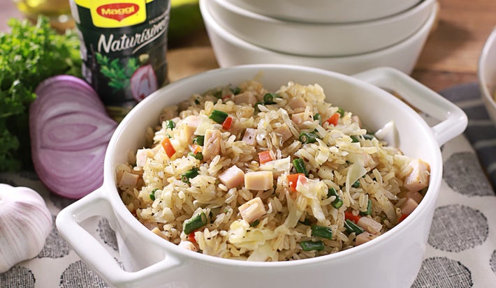 - 2.Añadí el arroz cocido y el aceite de ajonjolí, mezclá bien. Cociná por 3 minutos más, retira del fuego, serví.