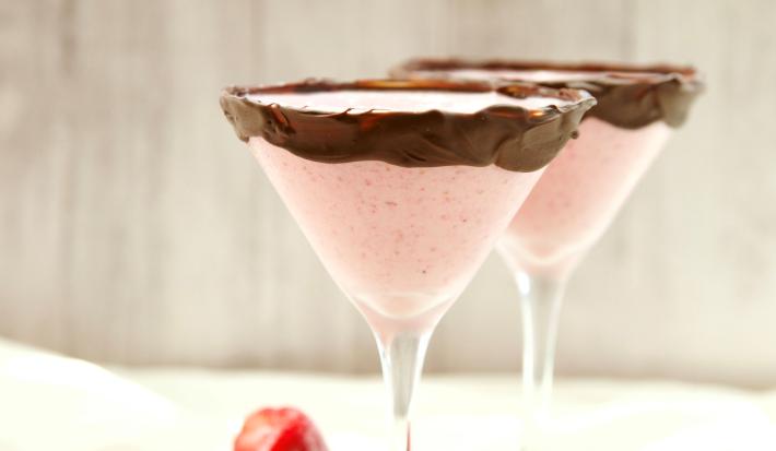 - 2.Decorar las copas de martini frías con el chocolate derretido.