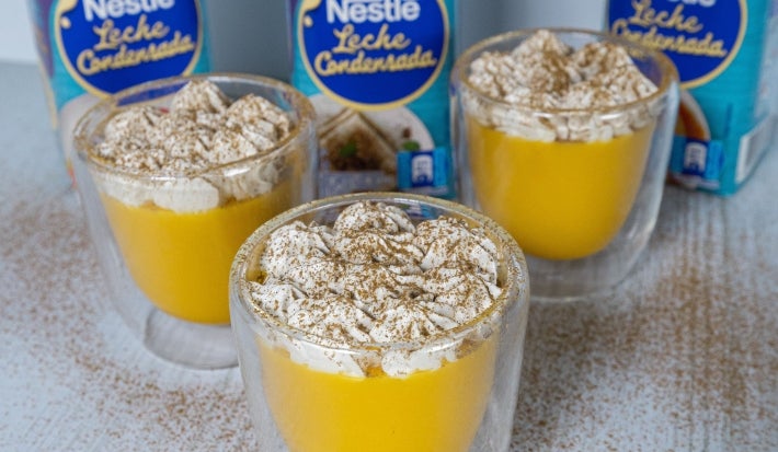 - 4.Colocar la mezcla en una copa o vaso, en porciones individuales, y poner el merengue por encima. Llevar a la heladera.